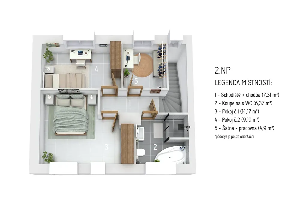 koupelna s WC: 6,37 m² (vana i sprchový kout)