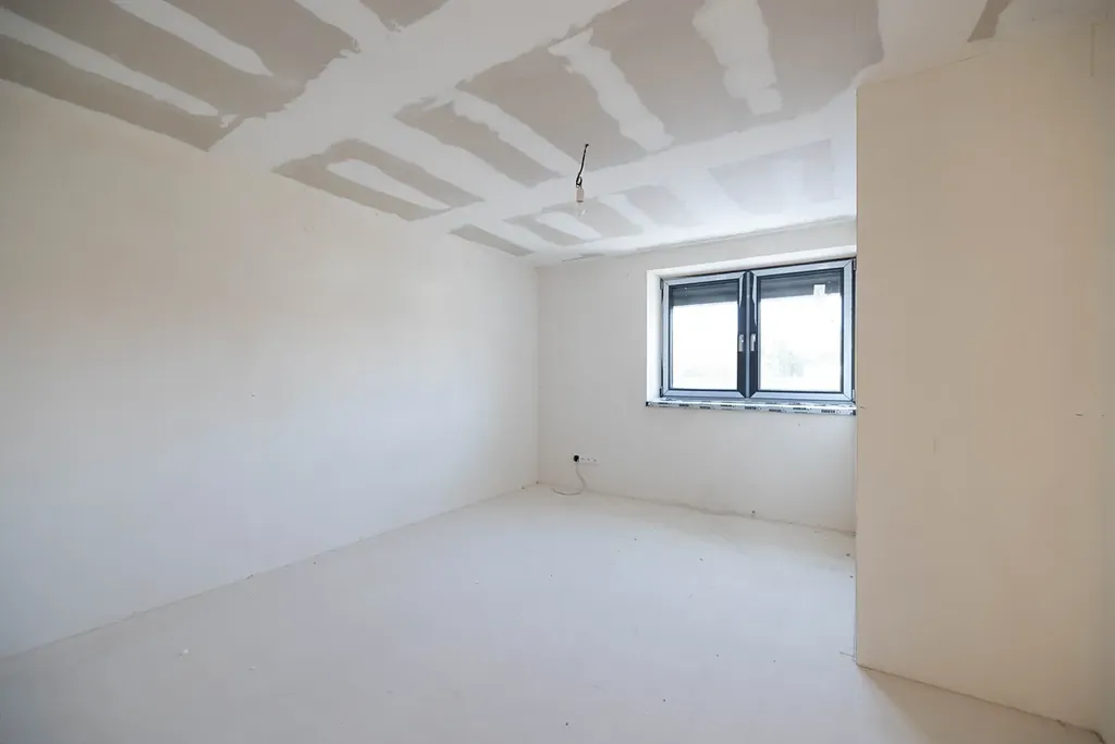 Dům je těsně před kompletním dokončením na klíč vyjma finálního povrchu podlah (vinyl, plovoucí podlaha atd.), obkladů, dlažby a sanity v koupelně a interiérových dveří.