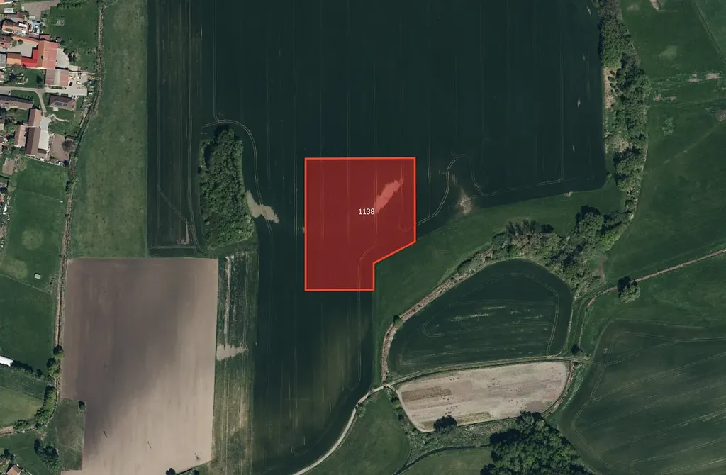 Celková výměra parcely činí 18 429 m², z toho k prodeji je podíl odpovídající 4 607 m² orné půdy.