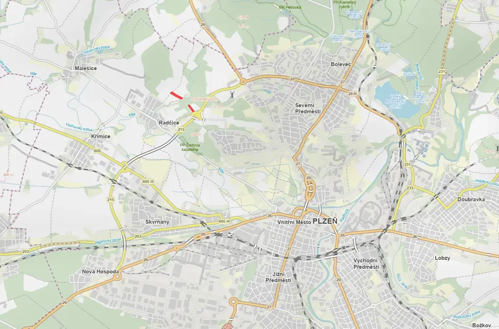 Pozemky se nacházejí na severozápadním okraji Plzně, v příměstské části Radčice.
