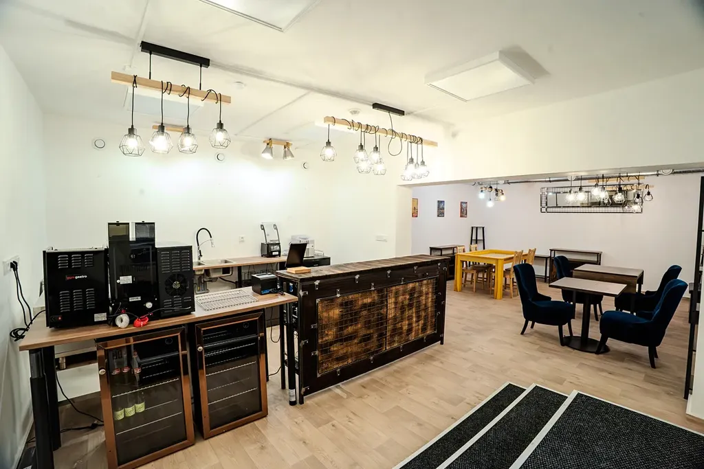 Aktuálně je prostor využíván jako kavárna s hernou deskových her, což mu dodává velmi příjemnou a funkční atmosféru. V případě zájmu je možné se dohodnout na přenechání stávajícího vybavení za úplatu, není to však podmínkou pronájmu – prostor lze snadno přizpůsobit vlastnímu konceptu.