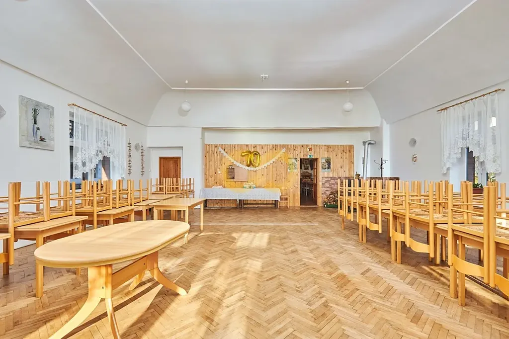 V hospůdce usadíte 30 hostů, má zařízený bar a vybavenou kuchyni v nerezu s konvektomatem a technickou myčkou. Vše je připravené na nadcházející letní sezónu. Navazuje na ni společenský sál pro 120 lidí. Ten má pódium a hodí se pro rodinné oslavy, koncerty, plesy a klidně i svatby.
