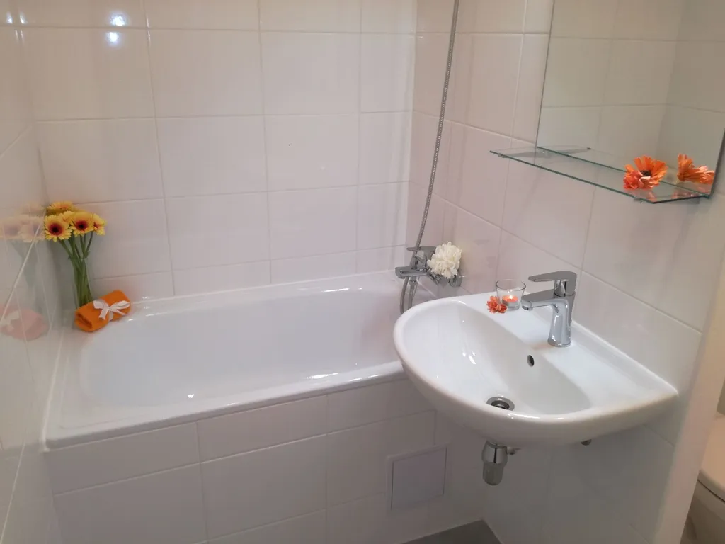 - koupelnu s vanou a umyvadlem, přičemž toaleta je chytře oddělena přepážkou,