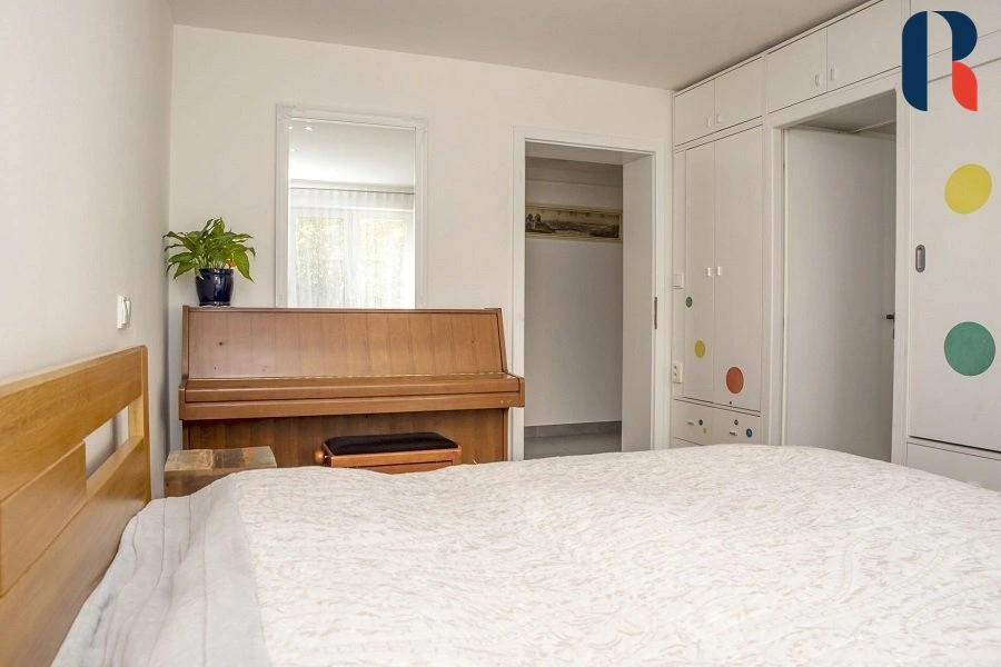 Samostatně stojící patrový dům 4+kk s podlahovou plochou 97 m2 disponuje 4 samostatnými pokoji, 2 koupelnami s wc a technickou místností. Interiér je prakticky dispozičně řešen, aby bylo využito každé místo ( vybavení na míru, vestavěné skříně), dům tak působí prostorně a zároveň útulně. Velkou výhodou je dostatek přirozeného světla v celém domě, ticho a přímý vstup z obývacích prostor na zahradu.