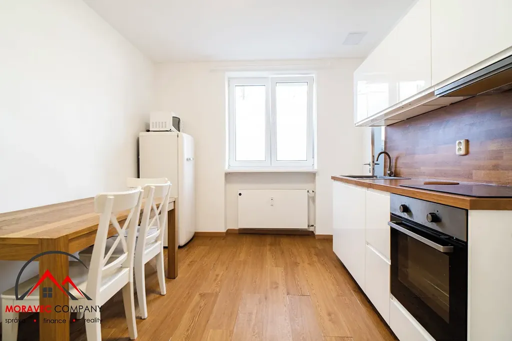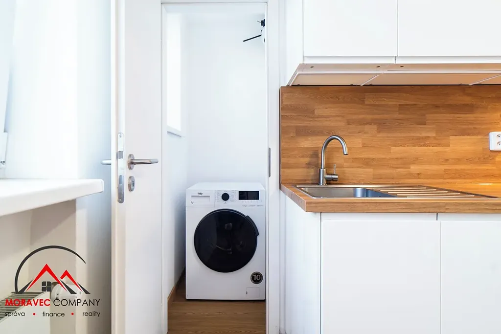Byt je plně vybaven – nechybí nábytek, spotřebiče, nádobí. Stačí si jen přinést osobní věci a můžete bydlet!