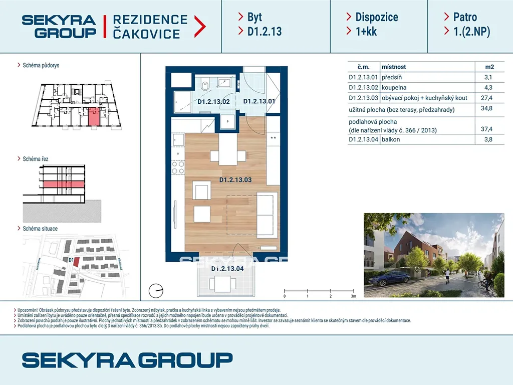 Dovolujeme si Vám nabídnout k prodeji byt 1+kk o výměře 37,4 m² s lodžií 3,8 m² v rezidenčním projektu Rezidence Čakovice, etapa B.