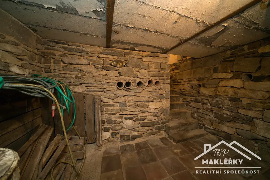 Vážení a milí, nabízím ve výhradním zastoupení k prodeji nemovitost, rodinný dům, ležící v okrajové části obce Veltruby u Kolína. Jedná se o patrovou, částečně podsklepenou stavbu s přístavkem, postavený v druhé polovině 50.let 20. století. Dům je v původním stavu, užívaný, k rekonstrukci. Fasáda břizolit, či podobný materiál. Interier je zachovalý, k okamžitému bydlení, v současné době fungující, majitelé bydlící, je ale potřeba přihlédnout ke stavu např. dřevěných podlah v některé místnosti, pod kterými není beton, ale stále písčitý zásyp. Okna jsou původní, špaletová, zakytovaná. Zařízení, které bude předmětem prodeje je částečné, majitelé si část odvezou. Sklep je prostor pod částí budovy a další sklep je pod přístavbou. Tam je i garáž, pokoj a skladový prostor pod sedlovou střechou.