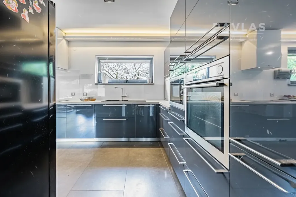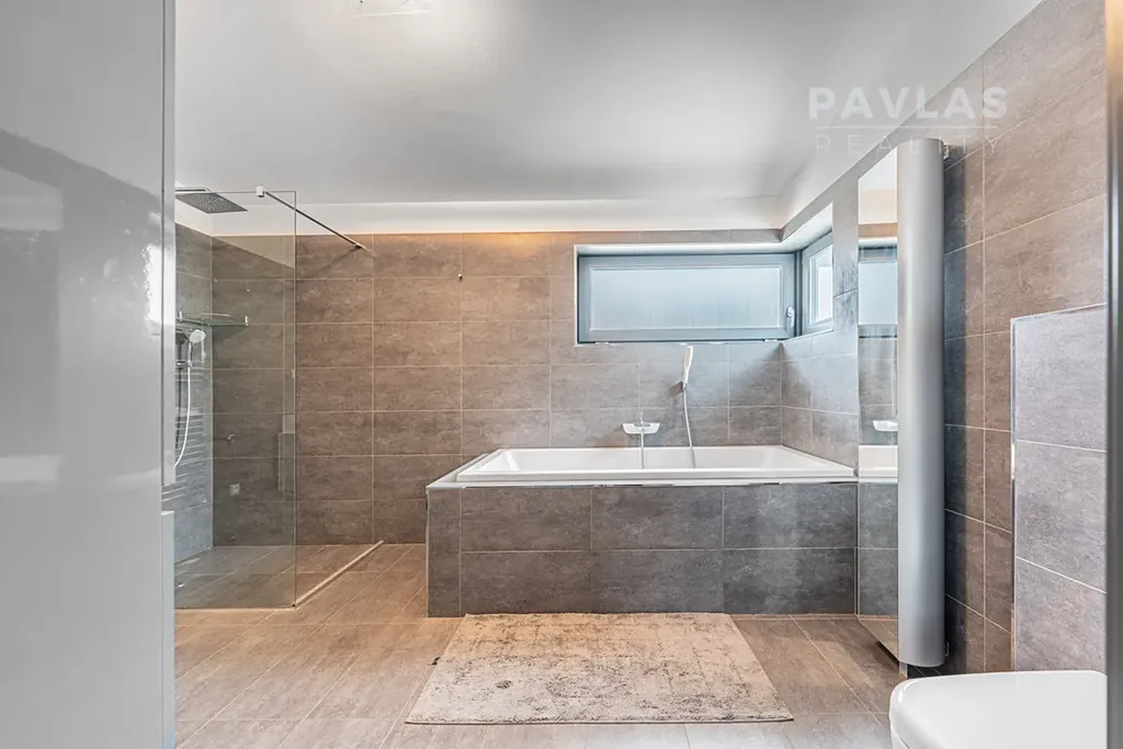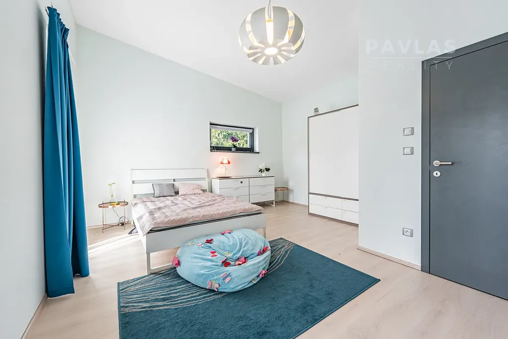 Dominantou celého domu je velkorysý obývací pokoj volně navazující na kuchyni; srdce domova, ideální pro rodinnou pohodu i setkávání s přáteli. K tomu pět prostorných samostatných ložnic, tři elegantní koupelny a dvě rozlehlé terasy, které nabízejí prostor pro ranní kávu i večerní relax pod širým nebem. Celý spodní trakt domu je vybaven velkými portálovými okny, díky kterým je každý kout příjemně prosvětlen denním světlem a interiér plynule propojen se zahradou i terasami.