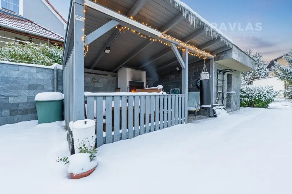 V chladných dnech zahřeje příjemné podlahové topení i vnitřní krb, zatímco letní večery lákají k posezení u venkovního krbu a udírny, vše na míru těm, kdo umí vychutnat život v plné šíři. Vaše soukromí a komfort ještě zvyšuje dvougaráž, vlastní studna napojená do domu a nadkrokevní bylinková zahrádka i ovocné keře, které každé ráno dodávají čerstvou vůni a chuť venkova.
