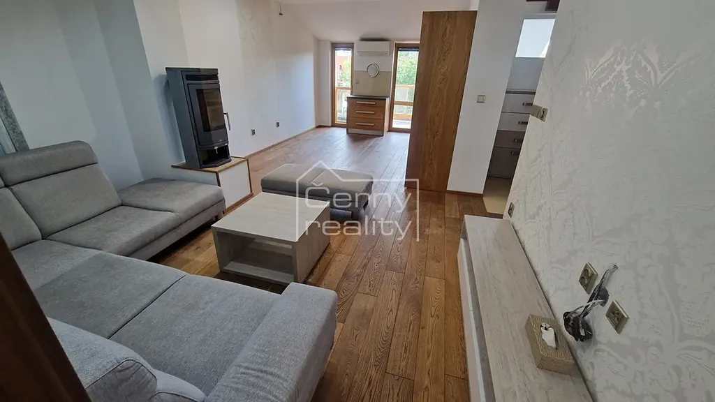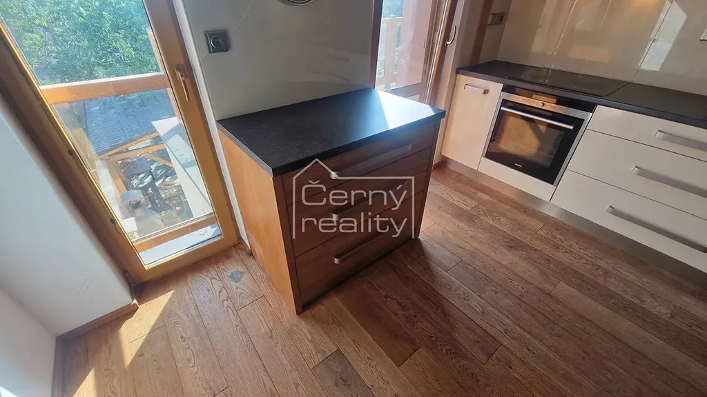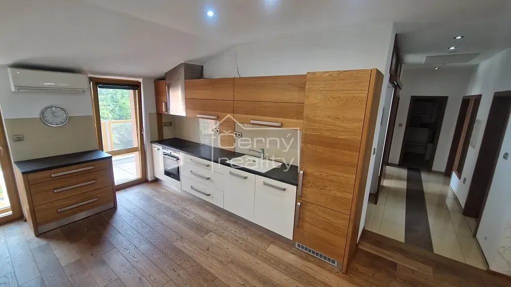 Pronájem luxusního bytu 4+kk (170 m2), z toho - byt (98 m2), terasa (16 m2), sklep 17 m2, chodba (12 m2), půda (30 m2). Dále je k dispozici a sdílená zahrada s pergolou a krbem (180 m2). Byt je umístěn v rodinném domě, do bytu se vchází společnou domovní chodbou, byt je oddělen vstupními dveřmi, za nimi se na chodbě nachází vestavěný botník a věšák, chodba o ploše 12 m2 se vstupem na zahradu, na chdobě lze umístit např. kola kočárek atp., z chodby je vstup i do klenbového sklepu, o ploše 17 m2.