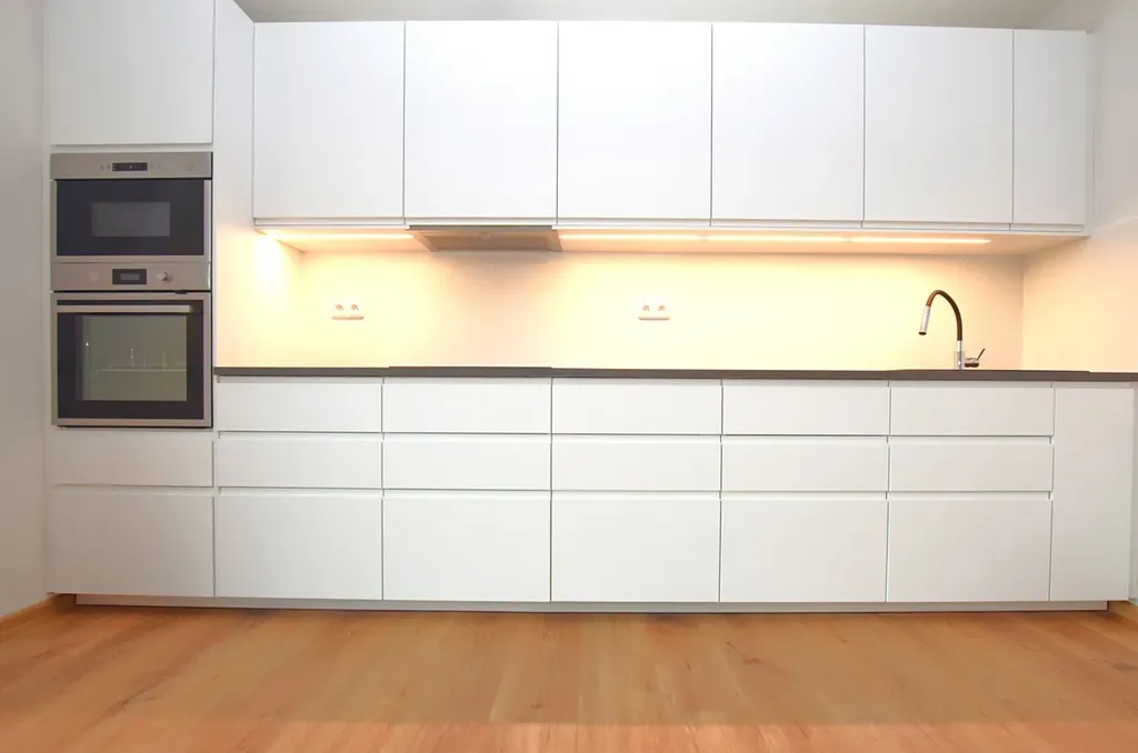 • Kuchyň s vestavěnými spotřebiči (indukce, horkovzdušná trouba, mikrovlnná trouba, myčka) propojena s obývacím pokojem