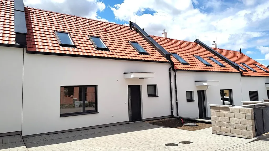Francouzskými dveřmi z obývacího pokoje vstoupíte na terasu, která navazuje na soukromou zahradu orientovanou do klidné části. Před domem jsou dvě parkovací stání na vlastním pozemku s přípravou na nabíjení elektromobilu.