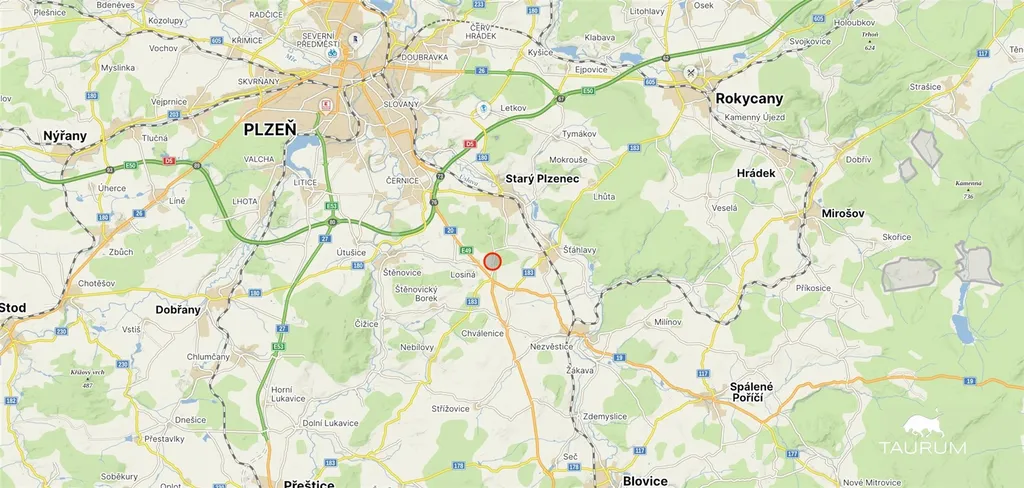 Pozemek doporučuji zejména díky výborné dopravní dostupnosti – do centra Plzně je to přibližně 20 minut jízdy autem a do obce jezdí také pravidelná autobusová linka. Losiná nabízí velmi dobrou občanskou vybavenost: místní úřad, několik obchodů, restaurace, mateřskou školu, dětské hřiště, sportoviště i koupaliště. Velkou předností pozemku je nejen jeho umístění na okraji obce, ale také krásný výhled do krajiny. Přímo z pozemku je vidět i blízký hrad Radyně.