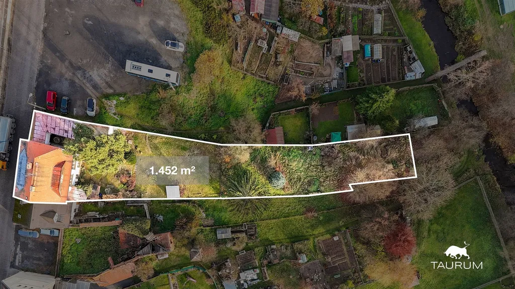 Z domu je krásný výhled do údolí situovaný na jih. Zahrada o celkové výměře 1.250m² je svažitá, horní část je oplocena a udržována, spodní část čeká na své budoucí využití.