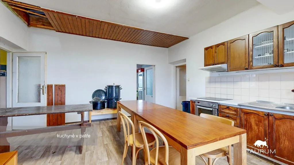 V patře jsou další místnosti, které je možné využívat po provedení rekonstrukce jako obytný prostor o dispozici 3+1 s koupelnou a WC. V současné době je užívaný jako sklad.