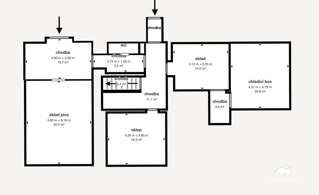 V přízemí je restaurace, výčep, hlavní sál, dva salónky, WC, nově přistavěná kuchyně a částečně i prostor pro výrobu a prezentaci piva.