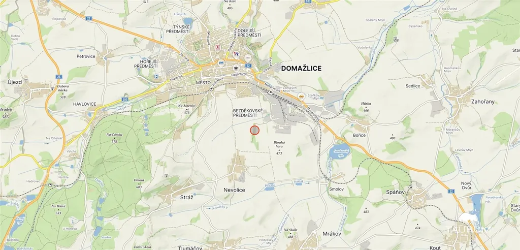 Pozemek se nachází v okresním městě Domažlice, které nabízí kompletní občanskou vybavenost – školy, zdravotnická zařízení, úřady, obchody i sportovní a kulturní možnosti. Dopravní dostupnost zajišťuje silnice I/26, která propojuje město s Plzní a dálnicí D5.