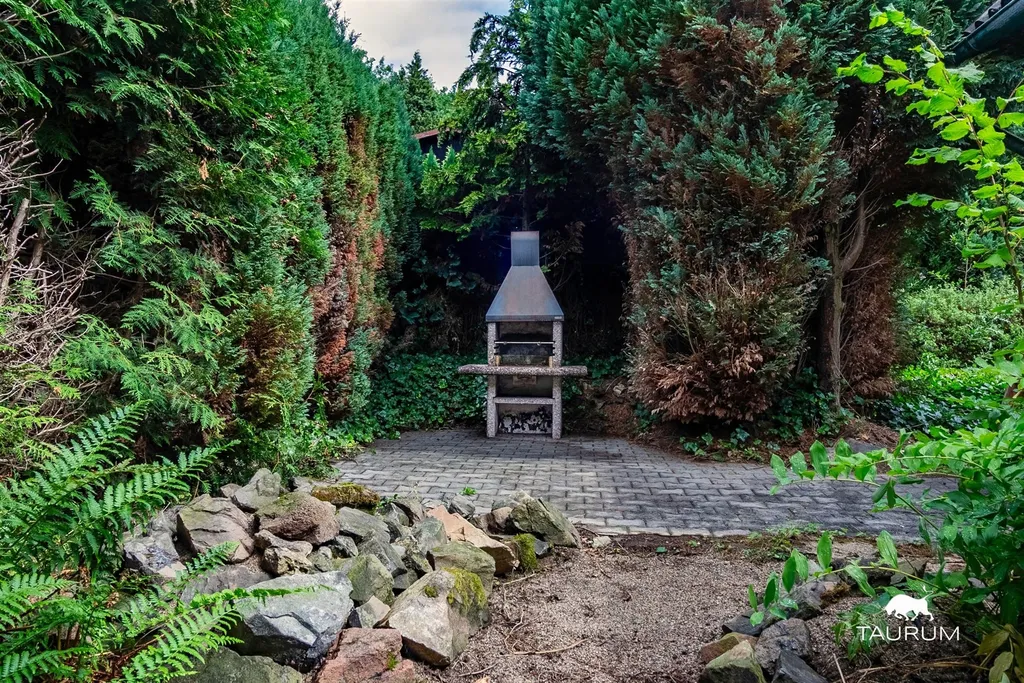 Pozemek okolo chaty je kompletně oplocený, lehce svažitý, obrostlý keři, což umožňuje absolutní dostatek soukromí.