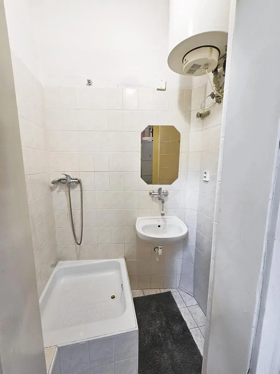 Koupelna se sprchovým koutem a samostatné WC se v zimě hůře vytápí, jsou přístupné přímo z chladné pavlače - zohledněno v ceně nájmu.