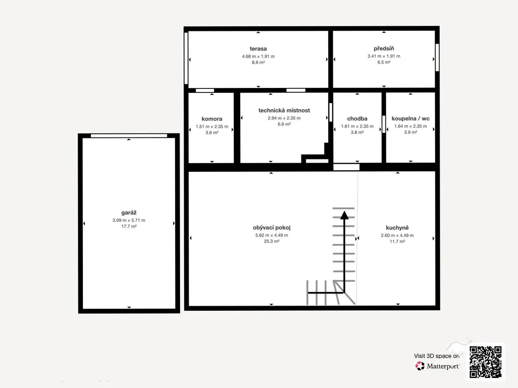 Kompletní představu o dispozici a prostorovém uspořádání získáte z 3D virtuální prohlídky.