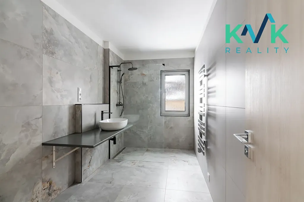 Dům 4kk s užitnou plochou 160 m2 je řešen prakticky, vybaven kvalitními materiály a moderními technologiemi. Splňuje nároky na energetickou úspornost s certifikací A. Dispozice této nemovitosti je řešená velmi intuitivně. Z předsíně se po pravé straně nachází technická místnost, kde je srdce domu se zabudovanou fotovoltarikou jako zdroj tepla a také bojler. Vedle se nachází spíž pro uložení potravin. Naproti je první pokoj, který sousedí s koupenou. Dále po pravé straně poskytuje pohodlí s výhledem do zahrady druhý pokoj. Společenská místnost s krbovými kamny (výkon 12-14 kW), klimatizací a prostorem pro kuchyňskou linku je situovaná na jižní stranu. Celý tento prostor má dva vstupy na zahradu. Podlahy ve společenské místnosti jsou pokryté vinylem o tloušťce 1 cm, v ložnicích se projdeme po laminátu o tloušťce 1 cm a v technických místnostech se nachází dlažba. V celém domě je položeno pro podlahové topení (folie a kabel) a zabudované termostaty ovládané přes Wi-Fi, jenž zajišťuje příjemné teplo v každém ročním období. Topení je doplněno klimatizací, která nabízí jak chlazení, tak vytápění, což přispívá k maximálnímu komfortu bydlení.