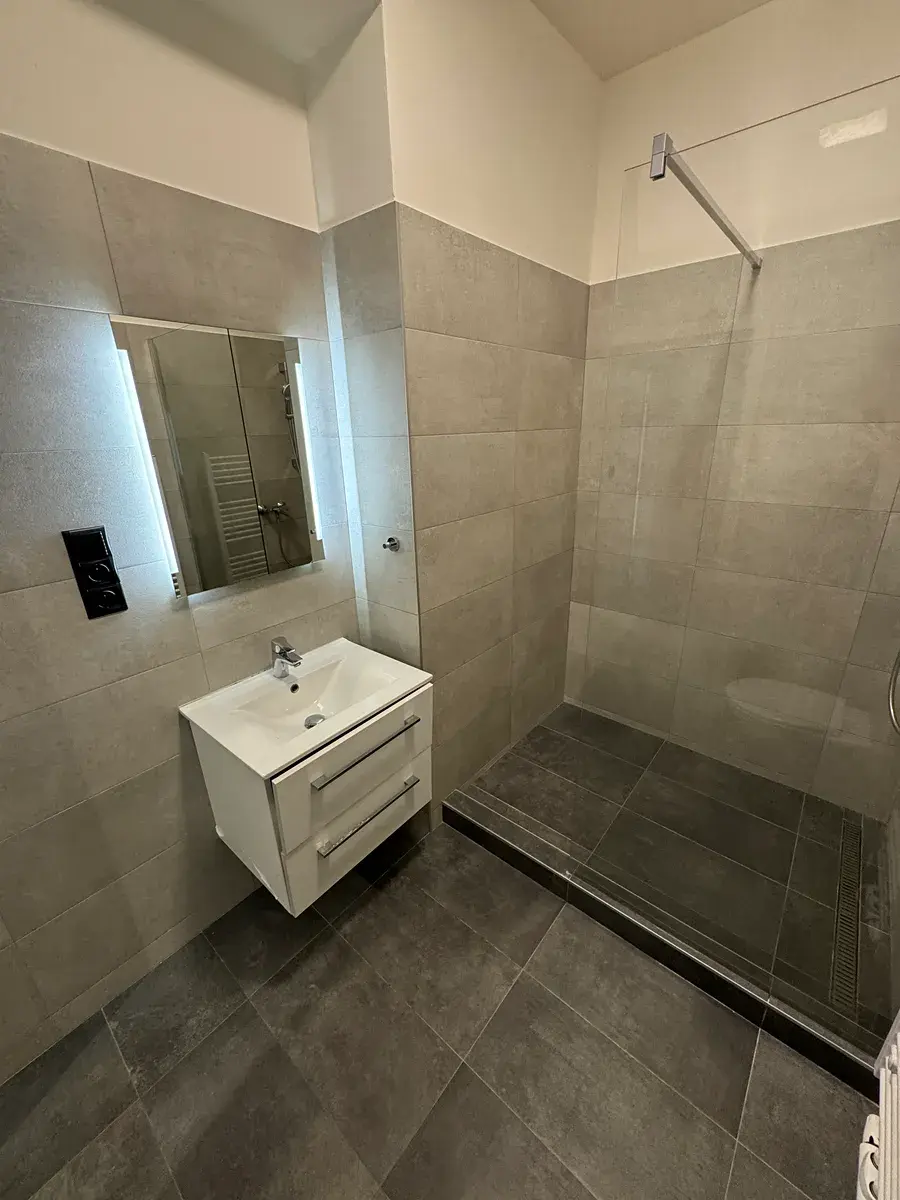 Exkluzivně nabízíme k pronájmu tento prostorný byt o dispozici 1+kk a rozloze 47 m2 nacházející se ve 3.NP cihlového domu bez výtahu. Hlavní obytná místnost je opticky rozdělena designovým policovým dílem a tím je prostorově oddělen prostor pro postel od obývacího pokoje s kuchyňským koutem. Součástí vybavení bytu je nová kuchyňská linka včetně spotřebičů, součástí vybavení bytu je i pračka umístěná ve vestavěné skříni v chodbě. Byt má samostatný elektro kotel. Na podlaze je plovoucí podlaha a v koupelně dlažba. Byt byl nedávno kompletně zrekonstruován. Je zde dostatek úložných prostor díky velké vestavěné skříni v předsíni.