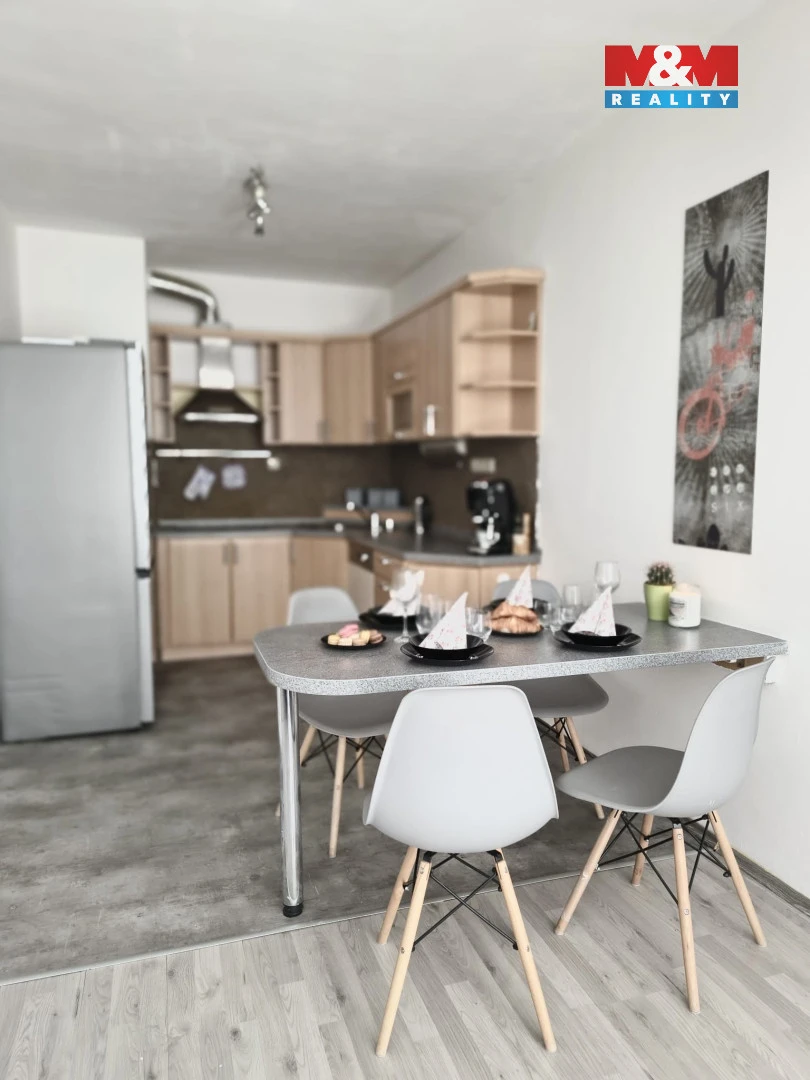 Dominantou bytu je nadstandardně velký obývací pokoj propojený s jídelní částí a plně vybavenou kuchyňskou linkou (myčka, varná deska, trouba, mikrovlnná trouba, lednice s mrazákem, kávovar). Samostatná ložnice nabízí manželskou postel, noční stolky a prostornou šatní skříň. Byt disponuje velkou vstupní chodbou s dostatkem úložných prostor, koupelnou s vanou a pračkou a samostatnou toaletou.