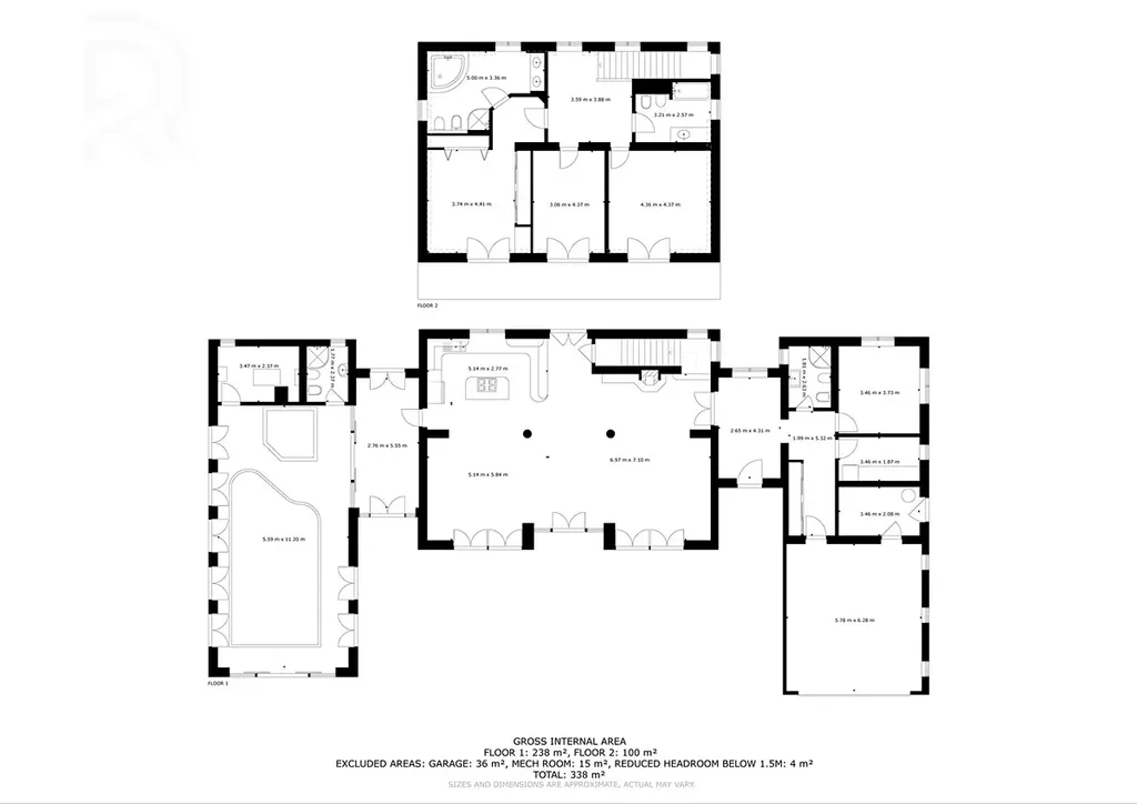 V patře se nacházejí další 3 neprůchozí pokoje. 2 mají společnou koupelnou a další pokoj - ložnice, má svou samostatnou plnohodnotnou koupelnu.