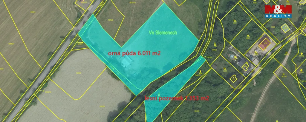 K prodeji rovinaté pozemky o celkové výměře 7.998 m2, které jsou územním plánu vedeny v nezastavitelném území. Největší část pozemku o ploše 6.011 m2 (v katastru orná půda) je v současné době využíván, jako pastvina a louka. Je oplocen dřevěnými ohradníky pro koně. Druhá část pozemku je vedena, jako les o ploše 1.353 m2, dva menší pozemky činí součást silnice. Pozemky navazují na obecní, asfaltovou komunikaci. V současné době probíhá změna územního plánu a využití pozemků zůstane beze změny. Na sousedním pozemku vznikne v budoucnu obecní fotbalové hřiště. Umístění pozemků na okraji obce směrem ke Lhotce.