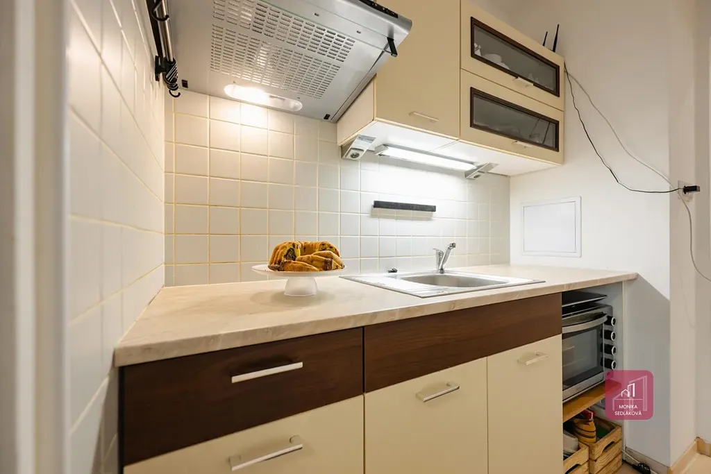 Tento byt je ideální byt pro jednotlivce, mladý pár nebo jako startovací byt. Byt je čerstvě vymalovaný, má nový sprchový kout a pěknou kuchyňskou linku. Dispozice je chytře rozdělená kuchyňský kout je za dveřmi v zádveří, takže obytná část zůstává prostorná a čistě obytná.