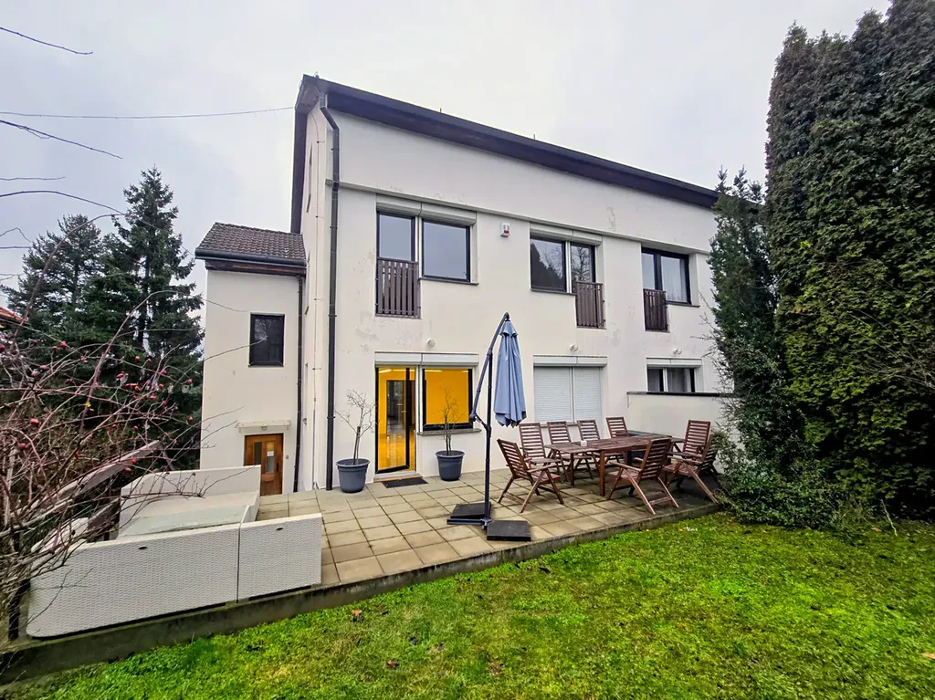 Exkluzivnĕ nabízíme 4 podlažní vilu v atraktivní lokalitĕ vilové rezidenční čtvrtî Braníka v blízkosti lesoparku Dobeška a Podolského nábřeží.Dům má v přízemí 2 pokoje, koupelnu a 3 technické místnoati.V prvním patře se nachází velký obývák se vstupem na terasu a zahradu, 2 velké pokoje, koupelna a toaleta.Ve 2 patře se nachází velký obývák s kuchyní a balkónen, 2 pokoje, koupelna a toaleta.Ve 3 patře jsou 2 velké pokoje a koupelna s toaletou.Dům byl vždy pronajat na kancelářské účely a je pro né velmi vhoddný.Momentálně probíhá renovace podlah a výmĕna oken.Součástí domu jsou garáže pro 2 auta.K dispozici bude dům od 1.Března 2026