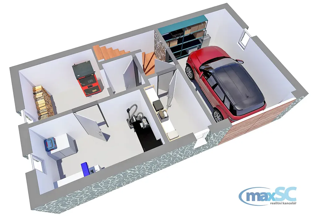 1. podzemní, kde se nachází několik sklepních místností a garáž pro jedno osobní vozidlo,