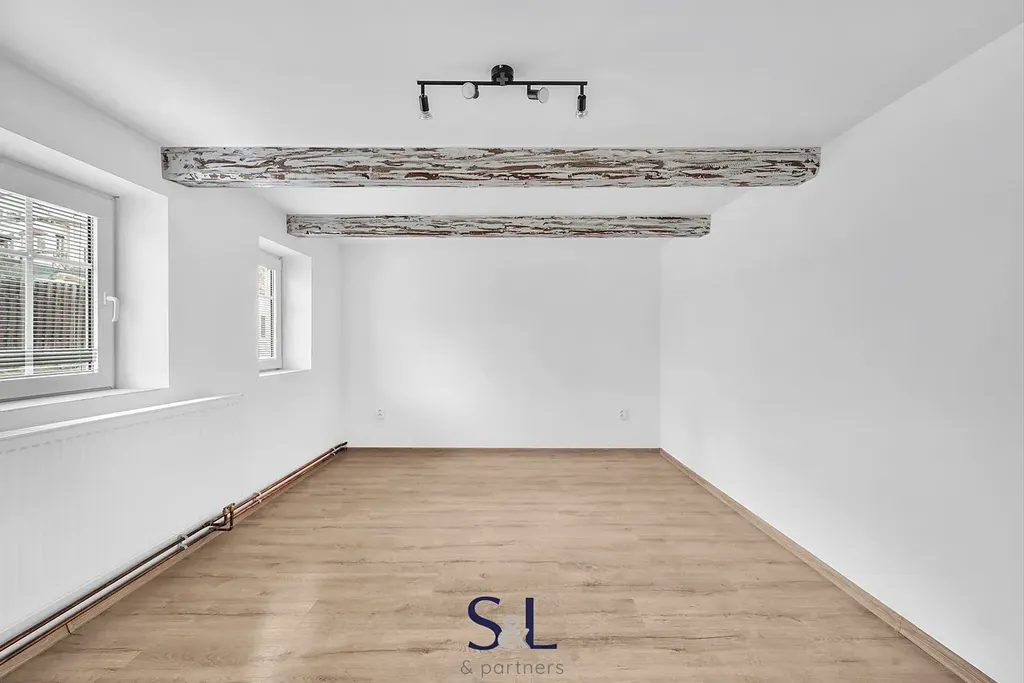 - nebytový prostor zvenku s kuchyňským koutem a koupelnou – 22 m² (kancelář, služby apod. – vhodné na pronájem).
