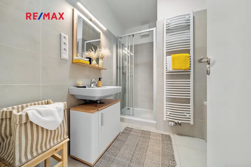 Součástí bytu je také prostorný sklep (7 m²), který pohodlně pojme sportovní vybavení a sezónní věci.