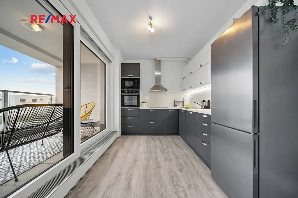 Byt se nachází ve 2. patře moderní novostavby z roku 2019 na adrese Firkušného 6. Díky východo-jižní orientaci je krásně prosvětlený po celý den – ranní slunce v ložnicích, odpolední pohoda v obýváku s výstupem na lodžii. Ta poskytuje příjemné místo k posezení s výhledem.
