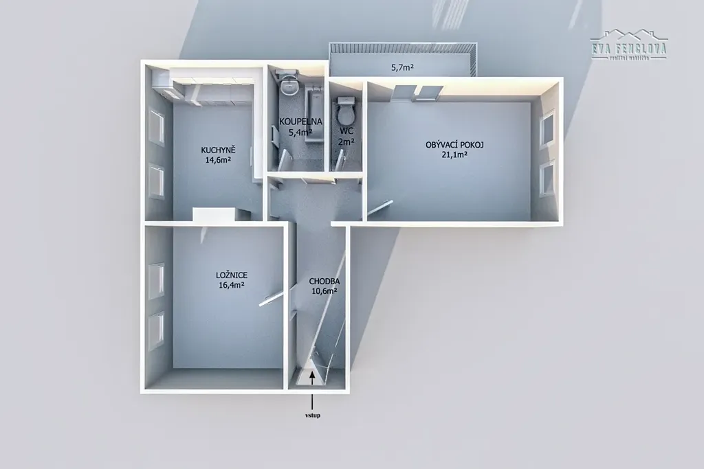 Na balkon o velikosti 6 m² se vstupuje z největšího pokoje.