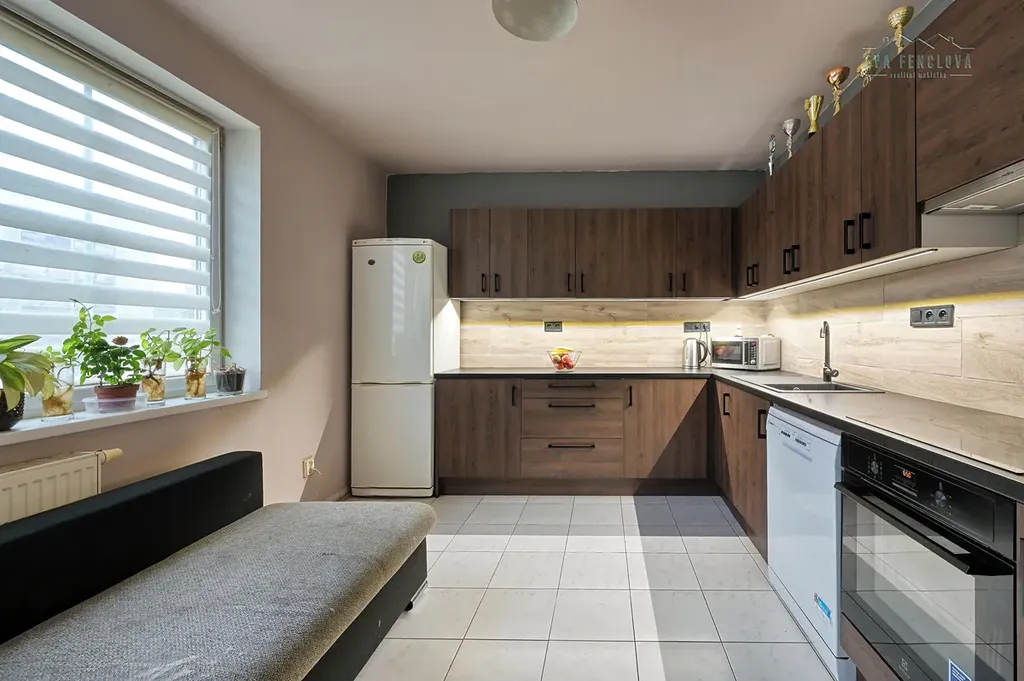 Byt s nově zrekonstruovanou kuchyňskou linkou se nachází ve druhém patře bytového domu.