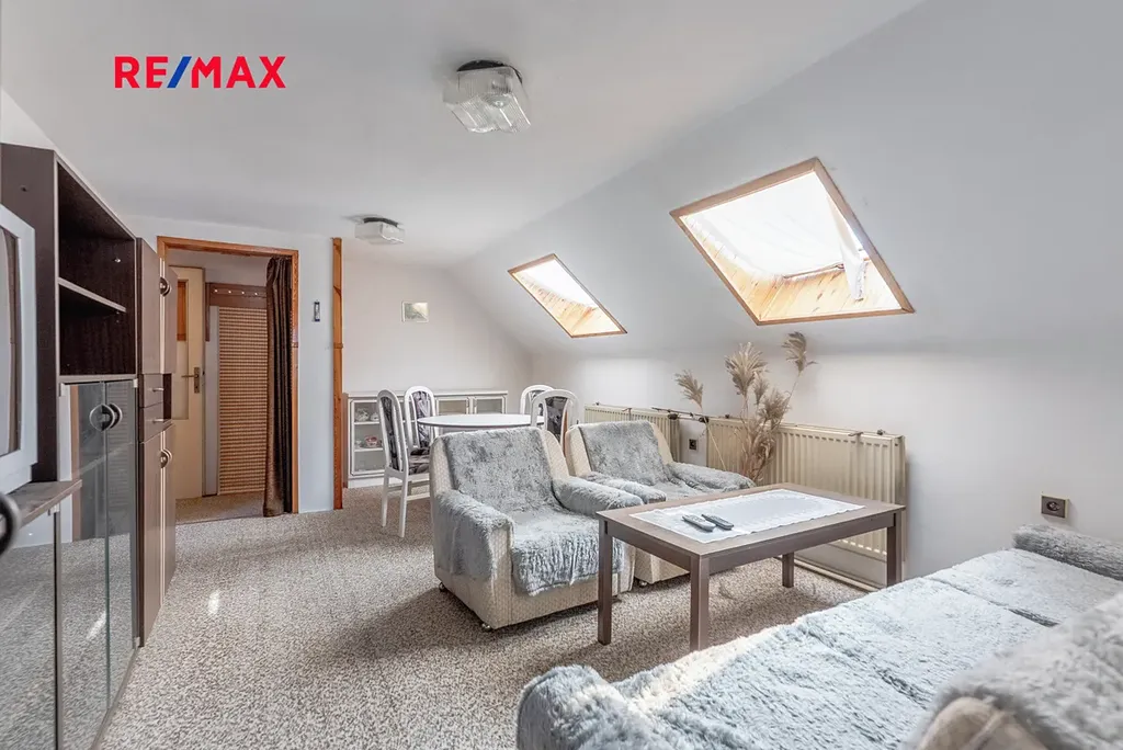 Podkroví: dispozice 2+1, koupelna, samostatné WC