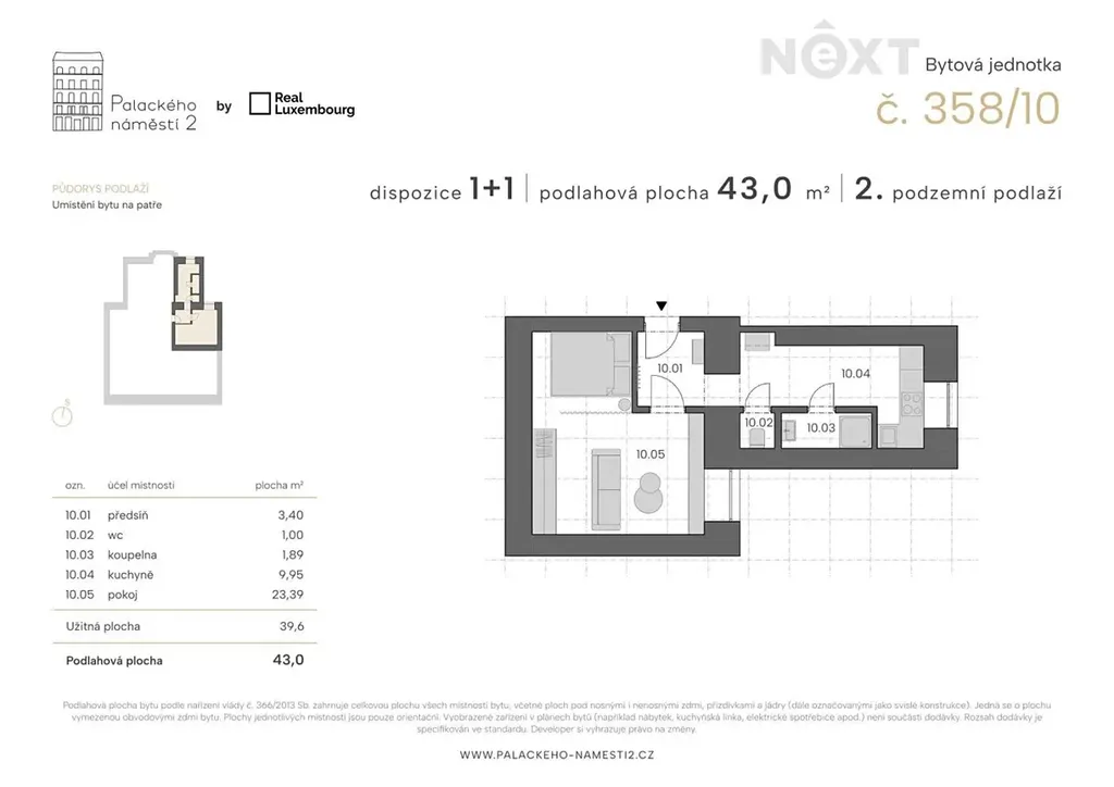Obě jednotky se nachází na jednom podlaží s vchody naproti sobě, předzahrádky (2 x 80 m2) lze spojit v jeden celek. Nemovitost se nachází na jedinečném místě, Palackého náměstí v centru Prahy. Byty jsou ve 2. podzemním podlaží (okna do klidného vnitrobloku) dobře udržovaného historického domu.