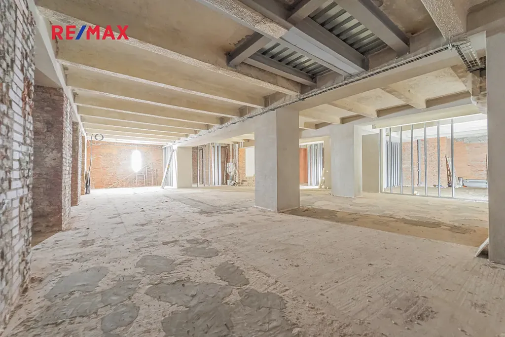 Prostory se nachází ve dvou podlažích – 1. nadzemní (260 m²) a 1. podzemní (266,4 m²), celkem tedy 526,4 m². Objekt má samostatné vstupy z ulice z hlavní ulice. Vhodné pro široké spektrum využití – gastronomii, showroom, studio, kanceláře, služby či kombinované provozy.