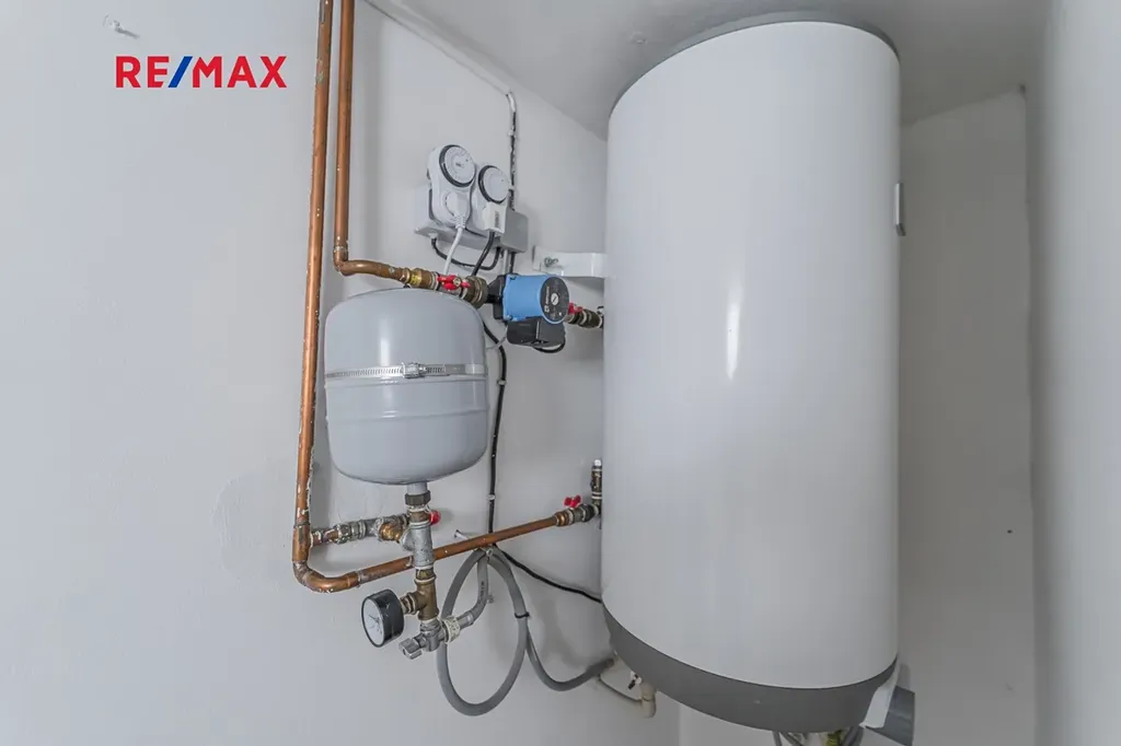 Elektřina samostatný elektroměr. Voda celoročně z kopané studny + letní užitková voda. TUV z bojleru s výměníkem napojeným na etážové topení. Možnost topení kamny na dřevo (komín je). Odpad do jímky.