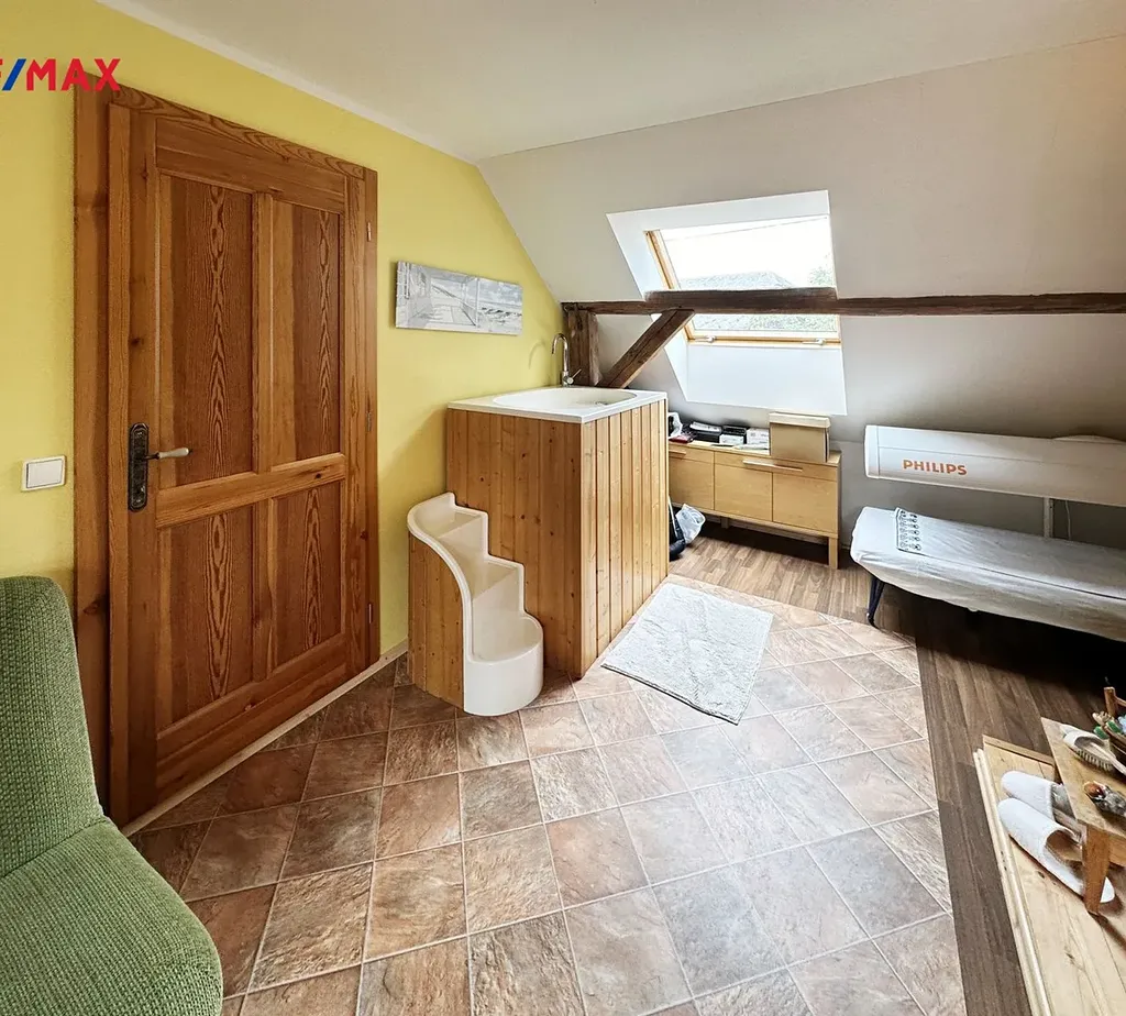 Stavení je o dispozici 8 + 1, dvě koupelny, technické místnosti, sklep a garáž. Dále na pozemku stodola sloužící ke skladování.