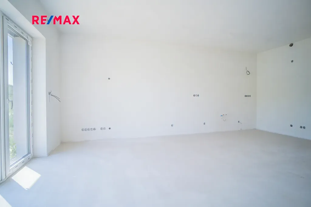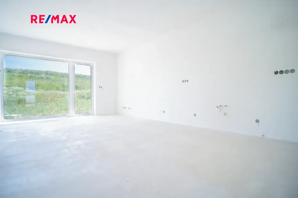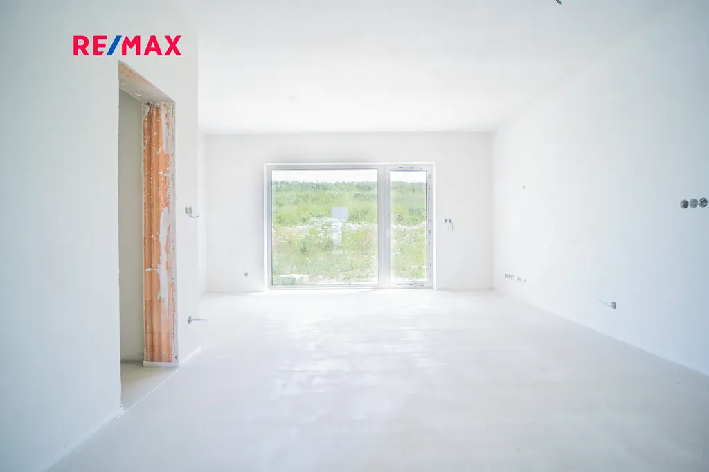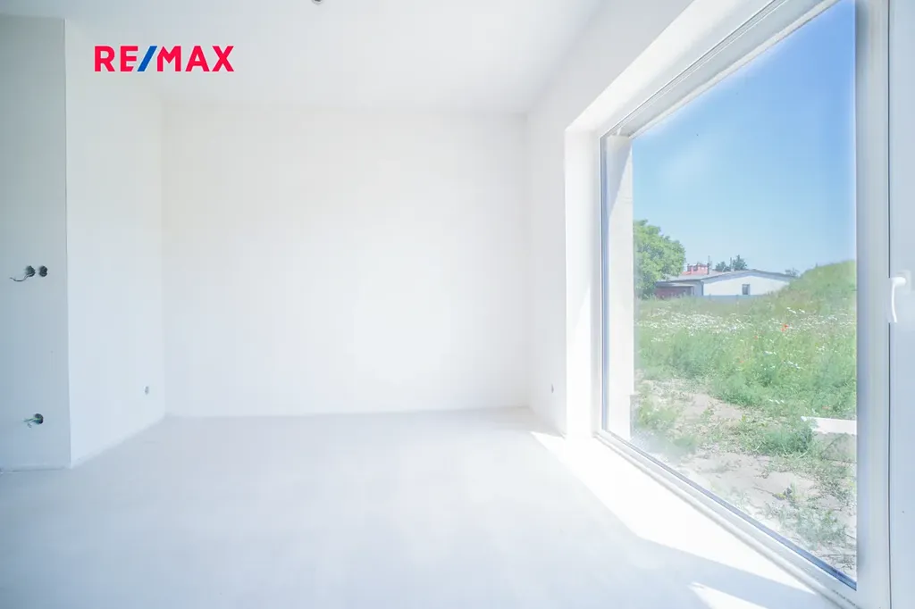 Tato novostavba s dispozicí 3+kk nabízí užitnou plochu téměř 100 m² a pozemek o velikosti přes 100 m². Dům je navržen s důrazem na funkčnost, pohodlí a moderní styl. V přízemí se nachází vstupní chodba s prostorem pro vestavěné skříně, toaleta a praktická komora pod schody, ideální jako spíž nebo úklidová místnost. Hlavní obytný prostor tvoří světlý obývací pokoj s kuchyňským koutem a velkým francouzským oknem, které propojuje interiér s přibližně 12 m² velkou terasou a zahradou – ideální pro letní grilování nebo odpočinek s rodinou.
