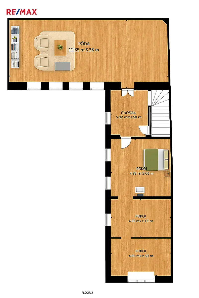 K dispozici jsou i úložné prostory (cca 60 m²) a půda s potenciálem dalšího využití (cca 110 m²).