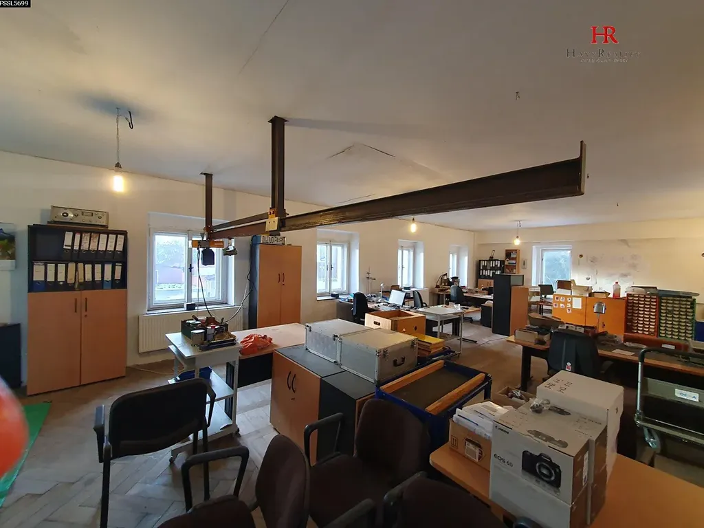 V místnosti najdete původní dřevěné parkety a špaletová okna. K dispozici je kuchyňská linka, pracovní stoly (celkem 10 kancelářských stolů), skříňky a dílenský pracovní stůl (ponk). Součástí vybavení je také nainstalovaný jeřáb, který umožňuje snadno přemístit až 200 kg do patra.