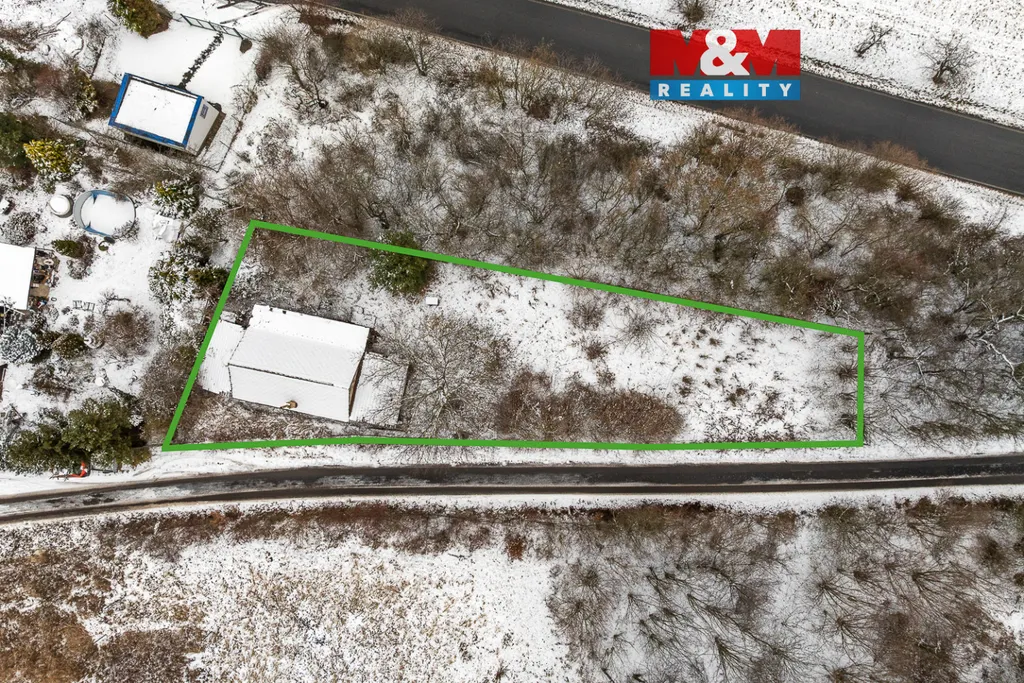 Pozemek se nachází na okraji obce, v soukromí, na samostatném, rovinatém oploceném pozemku, který má 683 m² a je zarostlý náletovými dřevinami. Stojí na něm chata, která je před rekonstrukcí nebo přestavbou. Dispozice je 2 místnosti a malý sklep a zastavěnou plochu má 80 m2. Podle územního plánu by šel stavební pozemek pod chatou o výměře 101 m2 zastavět i domem pro bydlení venkovského charakteru. Elektřina je tu zavedena, kanalizace a voda jsou v dosahu. Na pozemku se nacházejí také dvě kůlny. Pozemek je celodenně prosluněn.