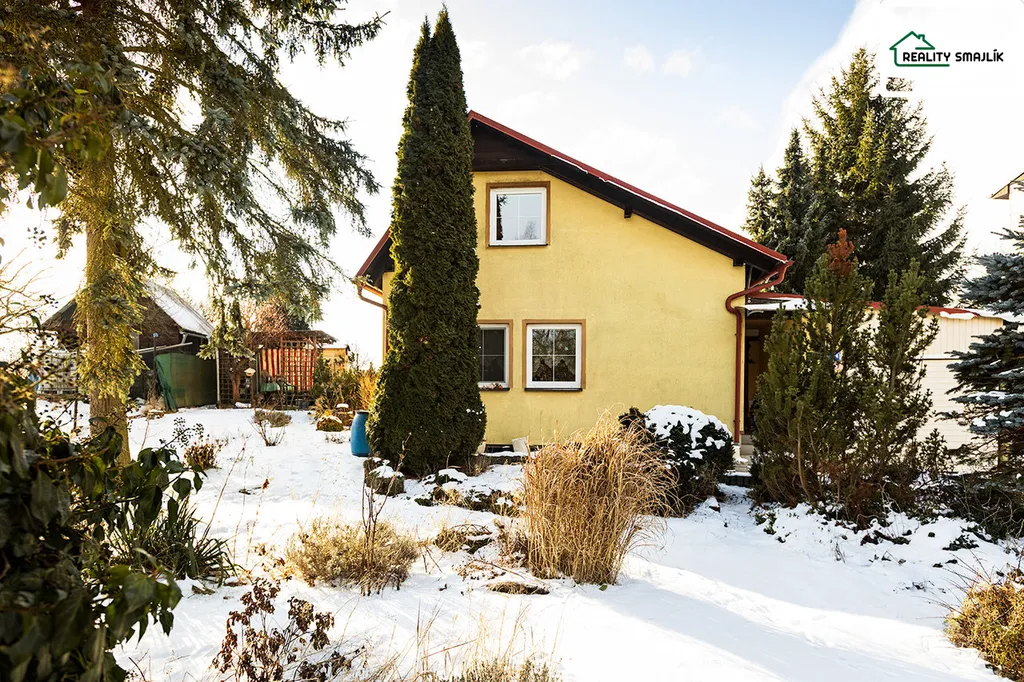 Jedná se o samostatně stojící zděný dvoupodlažní rodinný dům (přestavba chaty) atypický řešená. Dispozice: Závětří, garáž s dílnou (34m2), předsíň, hala, WC místnost, kuchyňský kout, pokoj, schody a pokoj. V prostorné koupelně je umístěný sprchový kout, pračka, umyvadlo a WC. V podkroví - 2x šatna, ložnice. Jedná se o otevřený mezonetový dům, vhodný pro ideálně 2 dospělé lidi. Dům je částečně podsklepený, ve sklepě je technická místnost, el. boiler a domácí vodárna. Napojeno na veřejný rozvod elektřiny. Výhodou je vlastní vrtaná studna, šetří náklady a možnost bezproblémové zalévání zahrádky. Odpadní vody svedeny do kovové jímky (6m3). Hlavní ohřev domu zajišťuje elektrokotel s rozvody ústředního vytápění po domě a dále možnost kombinace s vytápěním krbovými kamny. Ohřev užit. teplé vody zajišťuje el. boiler. Podstatná část vyobrazeného vybavení domu, může zůstat popř. dům bude zcela vyklizený.