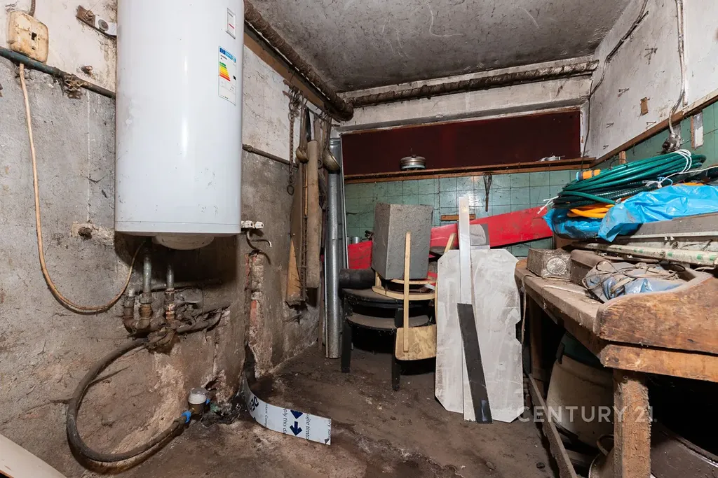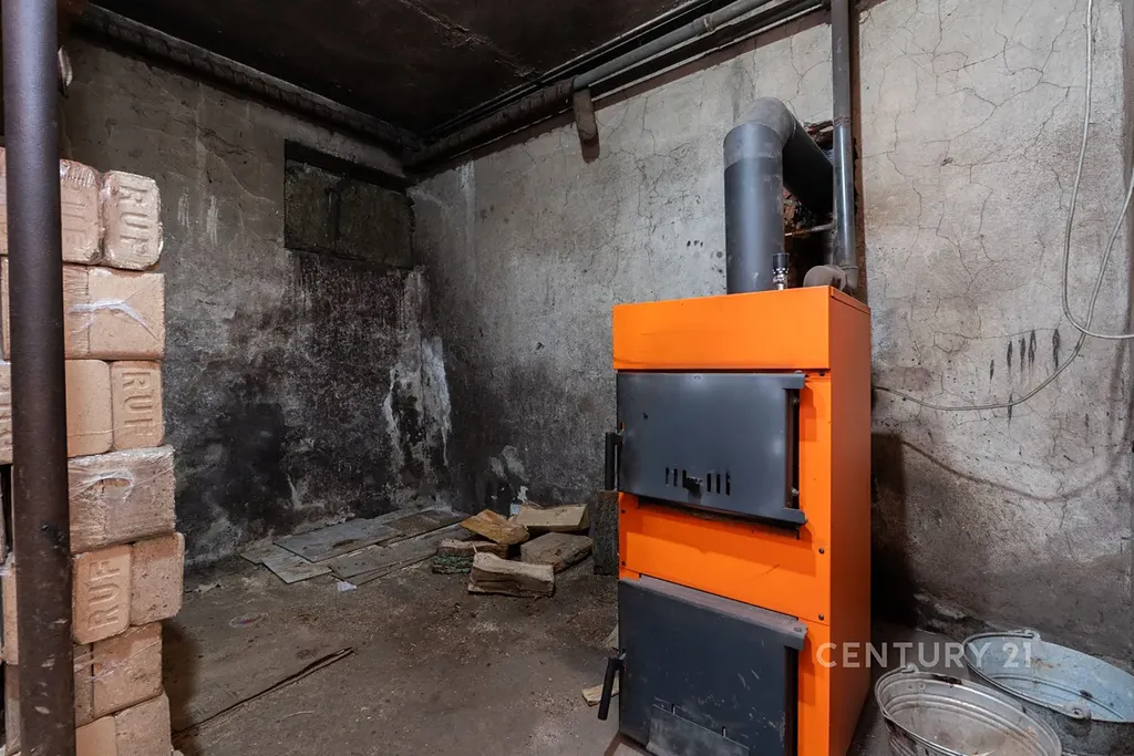 Suterén (1. PP): Plné podsklepení zahrnující garáž (12,6 m²) a technické místnosti, sklady a kotelnu na tuhá paliva (celkem cca 21 m²).