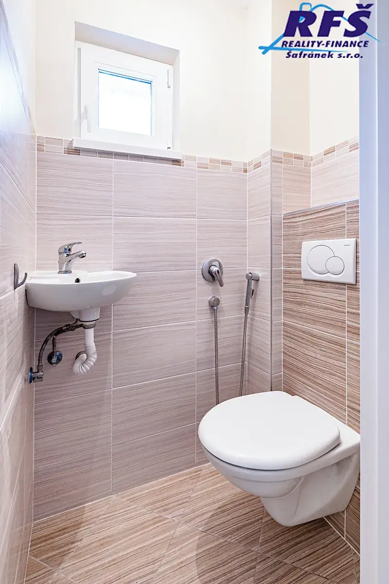 V přízemí se nachází také koupelna s WC, praktická pro každodenní rodinný provoz.