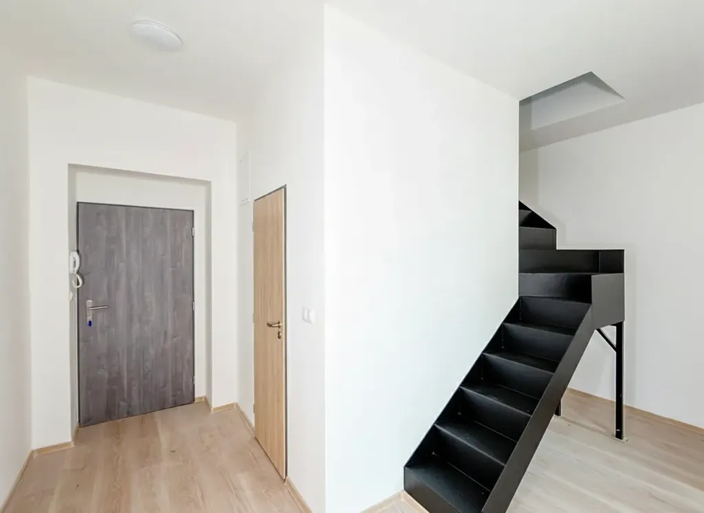 Byt o dispozici 2+1 se nachází ve 3. a 4. nadzemním podlaží a nabízí celkovou plochu 63 m² rozloženou do dvou podlaží. Spodní úroveň o výměře 21 m² tvoří otevřený obytný prostor s obývacím pokojem a koupelnou. Horní patro o ploše 41,3 m² poskytuje dostatek soukromí a variability využití – ideální jako ložnice, pracovna, knihovna nebo klidová relaxační zóna.